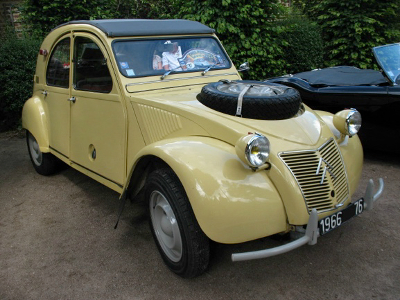 Idée d’un concessionnaire, une 2CV avec deux moteurs entraînant chacun un train (pour un