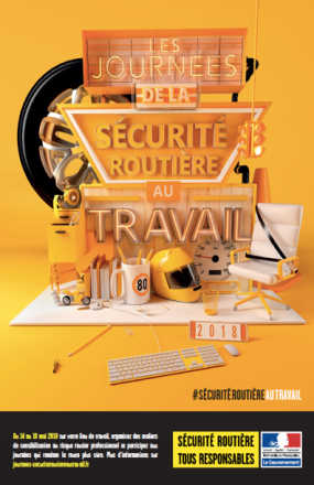 La 2e édition des « Journées de la sécurité routière au travail » se tient cette année du 14 au 18 mai 2018. À cette occasion, les salariés de toutes les entreprises, grandes ou petites, les agents de l’État et les adhérents du monde associatif sont invités, comme l’an passé, à réfléchir ensemble pour lutter contre les accidents de la route dans le cadre d’une mission professionnelle ou sur le trajet domicile-travail.