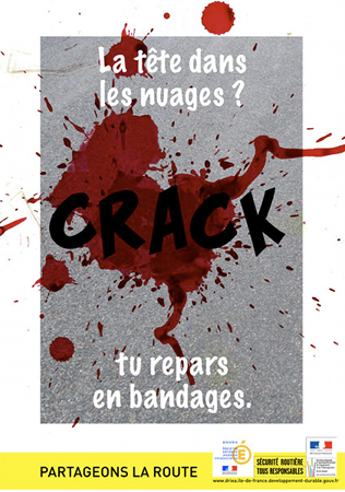 Parmi les actions que nous pouvons signaler, il faut mentionner l’implication des « jeunes », qui ont conçu une partie des affiches. Onze projets d’affiches ont été réalisés par les étudiants en 1ère année de master de stratégie de communication par l’image. Ces projets ont fait l’objet d’une pré-sélection par un jury technique le 20 février 2013. Le jury, constitué de représentants de l’éducation nationale, de la préfecture de police, de la DRIEA et d’un lycéen a choisi 5 projets et du 21 mars au 24 avril, ce sont les jeunes qui ont voté pour l’affiche ayant leur préférence.