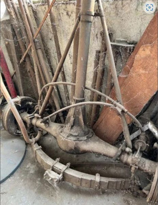 Suivra un lot de pièces de RENAULT Reinastella huit cylindres de 1930 (lot 141) : un train arrière comprenant arbre de transmission, pont, tambours de roues, lames de ressort transversales et vérins spéciaux de levage de l’auto en cas de crevaison.