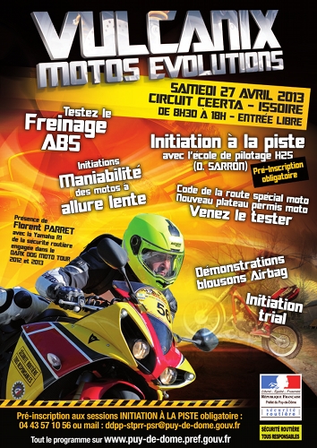 Le samedi 27 avril, de 08h30 à 18h00, sur le circuit Ceerta d’Issoire, vous aurez une journée complète pour vous initier ou vous perfectionner au deux roues.