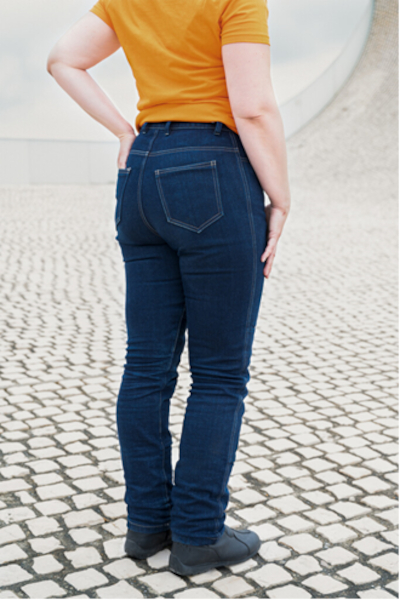 Motarde depuis 15 ans, Céline Froissart a longtemps cherché des jeans protecteurs adaptés à sa morphologie, sans jamais trouver son bonheur, malgré le fait qu’elle ait une taille dans les standards.