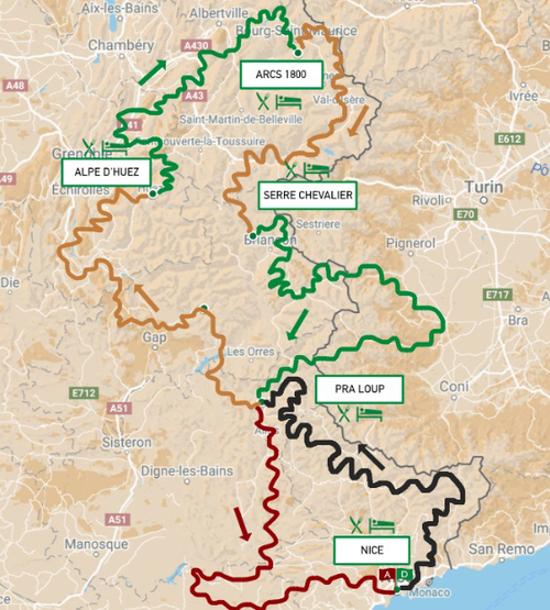 Au total, ce sont plus de 45 000 mètres de dénivelé, 5 000 virages et 48 cols qui seront franchis, sur les routes des Alpes Maritimes, des Hautes Alpes, de la Savoie et de l’Isère. Les plus beaux cols alpins seront arpentés, traversant les parcs français réputés tels que le Mercantour, le Queyras, Le Vercors, le Verdon ou encore le Cormet de Roselend.