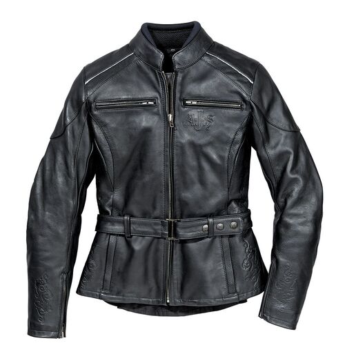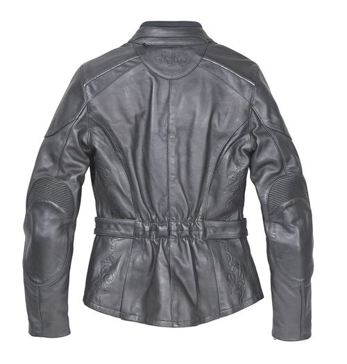 Voilà une veste féminine, bien cintrée, intemporelle et sûre ! Equipée de protecteurs Super Shield HTP amovibles au niveau des épaules et des coudes, elle peut également recevoir une dorsale Super Shield simple (19.99 €, en option).