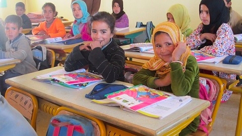 À l’occasion de la rentrée 2013/14, Philippe CHAUSSONNIÈRE (Pdg APRIL MOTO) et Serge CHARRIER (Dga), accompagnés des responsables locaux Ahmed HAMDANI (élu et représentant de la commune), Mohamed ROMARI (représentant de l’association des parents d’élèves), Mustapha RAZIOUI (militant associatif), Hamed BENABDELLAH (directeur de l’école) et de Laetitia CHEVALIER présidente de l’association Enfants du Désert, ont inauguré une nouvelle classe dans une école primaire située près d’Erfoud (sud-est du Maroc à 600 km de Marrakech).