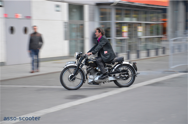 Ca va vite. Il faut se décider dans l’instant. Les assesseurs de Matthieu Lamoure ont l’oeil. Ils voient en un instant les enchérisseurs qui font un signe, discret. Sur l’écran, les euros défilent. Une relance de Matthieu Lamoure, une fois, deux fois. Adjugé. Le marteau résonne et déjà un autre deux roues arrive. Présentation rapide pour ceux qui n’auraient pas lu le catalogue, rappel du prix de départ et à nouveau les enchères débutent. Sur les visages des acheteurs, aucune tension, aucune nervosité, tout se passe à l’intérieur, et simplement, ce petit signe.