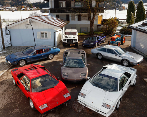 Une collection de neuf Lamborghini sera, elle aussi, proposée lors de cette vacation, allant de la Lamborghini Countach LP400 « Periscopio », livrée neuve à Rod Stewart au tracteur de la marque.