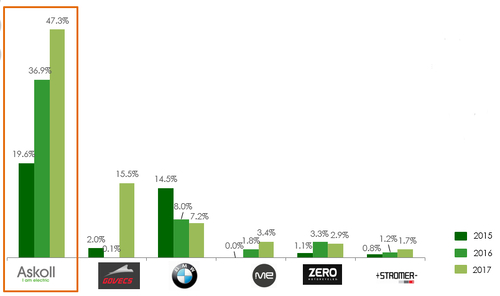 Conservant un business model classique pour la distribution -via un réseau de revendeurs- Askoll multiplie les partenariats avec les grands noms du sharing : eCooltra, Zig-zag, Mi-moto… A Milan, Askoll a 1.000 scooters en sharing qui sont utilisés plus de 10 fois par jour. Cela représente 10.000 déplacements quotidiens réalisés en Aksoll.