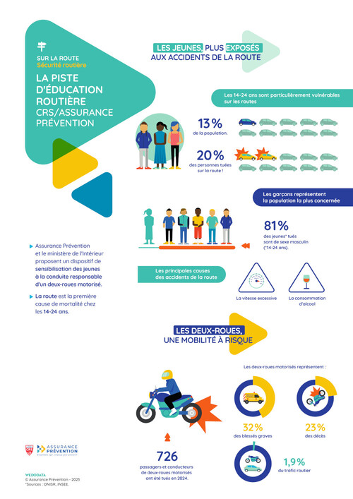 Les assureurs, via leur association Assurance Prévention, et le ministère de l’Intérieur vont proposer aux « ados » dans toute la France une initiation pratique aux spécificités de la conduite d’un deux-roues motorisé : la piste d’éducation routière CRS/Assurance Prévention. Une initiative qui répond à une réelle urgence : en France, en 2024, 726 passagers et conducteurs de deux-roues motorisés ont perdu la vie et on estime à plus de 5.000 le nombre de blessés graves.