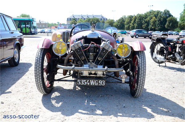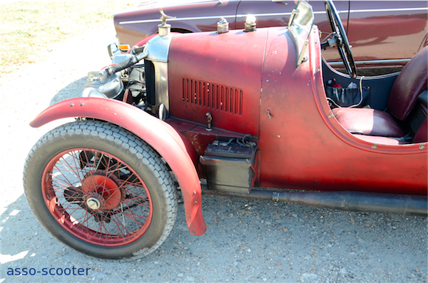 Ce tricyclecar est le seul 3 places connu. Il est « dans son jus » et est un infatigable dévoreur de bitume ! Les culasses ressortent du capot, donnant une impression de puissance, comme si le capot était trop petit. La batterie a été extériosée et l’huile est à portée de mains.