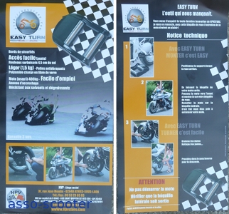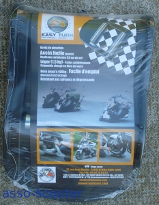 - la moto placée sur la béquille latérale, positionner EASY TURN dans le bon sens, juste devant la roue arrière.