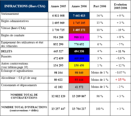 Les contraventions passent en 2006 à 13.2 millions en 2006 contre 12.8 millions en 2005. Ce la représente une augmentation de 3%.