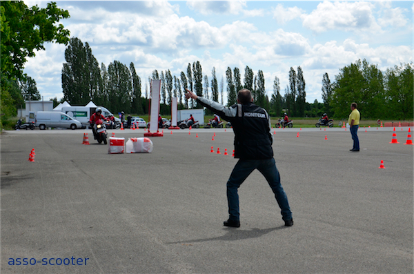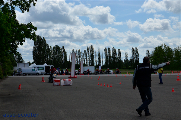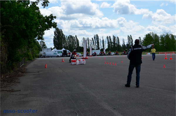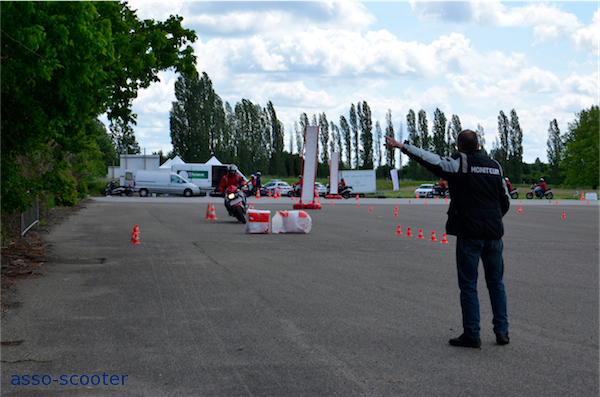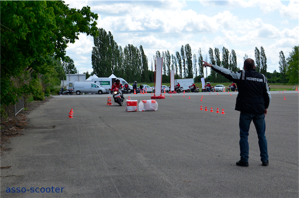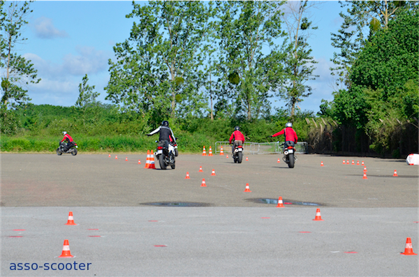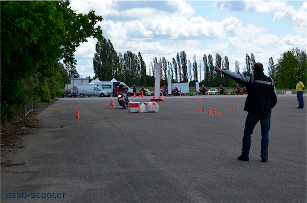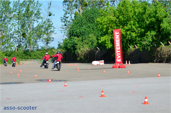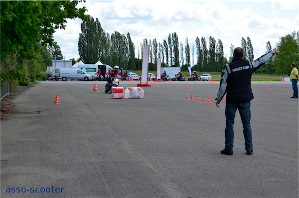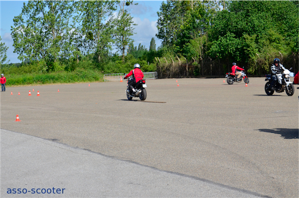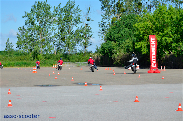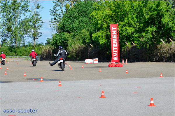 Et puisque cet atelier est censé nous mettre dans des conditions normales de circulation, après un évitement en solo où chacun a "évité" un obstacle selon son humeur, les choses se compliquent avec un évitement sur le côté désigné par Bruno.
