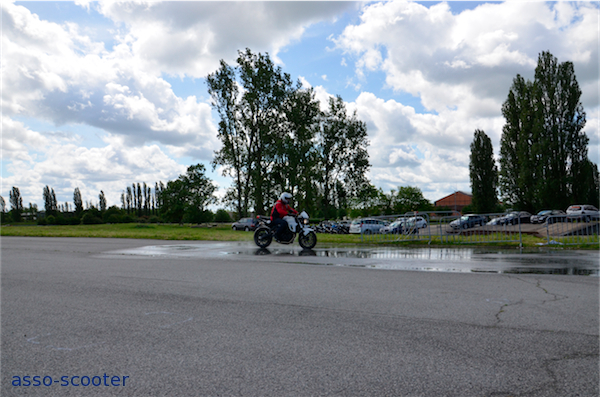 Ce qui est flagrant, c’est que le niveau des participants est disparate. Certains sont déjà aguerris quand d’autres sont à peine initiés. Les tous nouveaux permis ont d’ailleurs reconnus que le blocage des roues n’était même pas envisageable en cours.