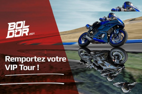 Inédit ! À l’occasion de l’épreuve mythique du Bol d’Or, Yamaha offre un Super VIP Tour (pour une personne) et trois VIP Tours (pour deux personnes). Une chance unique pour les gagnants de ce jeu-concours, de vivre la course de l’intérieur, aux côtés des équipes Yamaha Racing ! Sont mis en jeu :