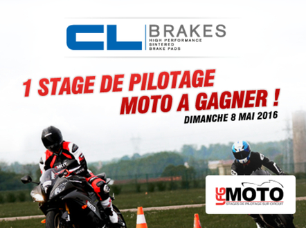 CL Brakes, fabriquant de plaquettes de frein en métal fritté, organise un jeu-concours dont le premier prix est un stage de pilotage sur le circuit de la Ferté Gaucher avec LFG MOTO le dimanche 8 mai 2016.