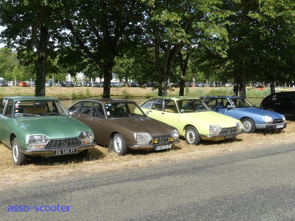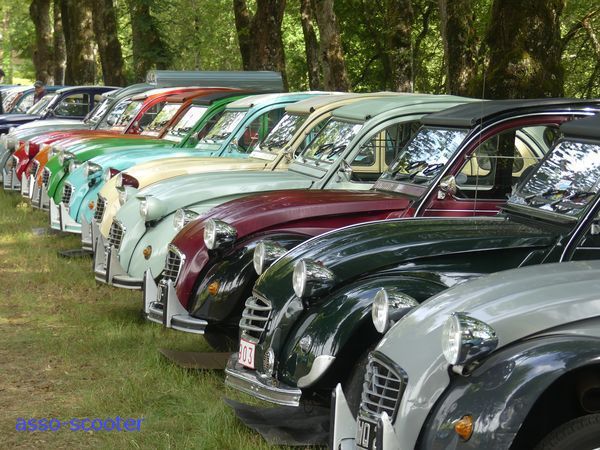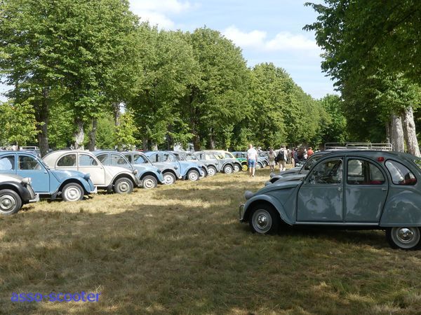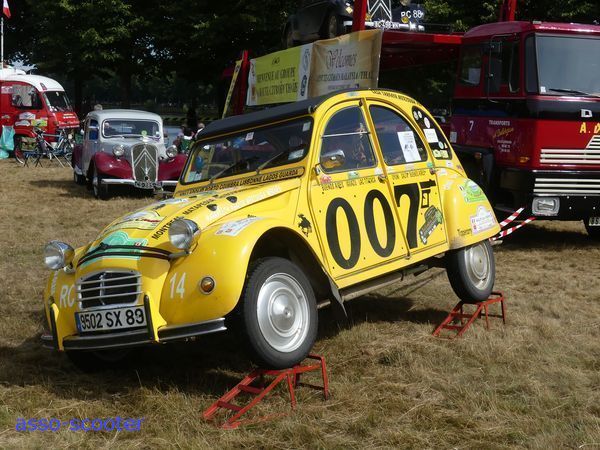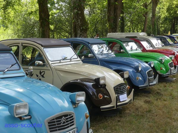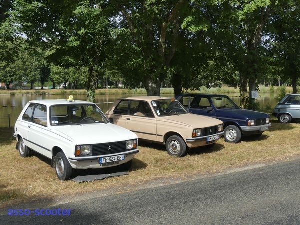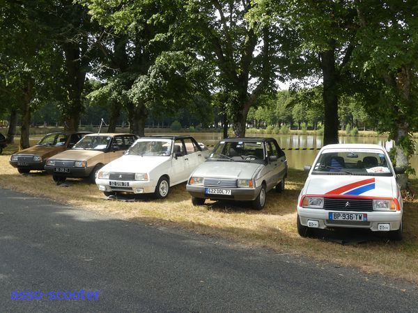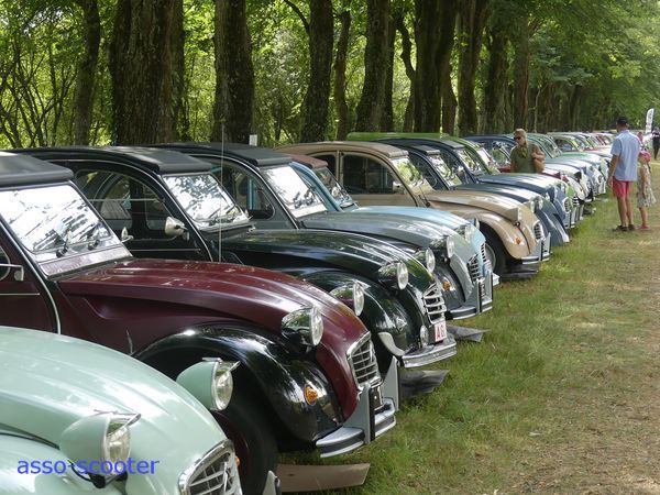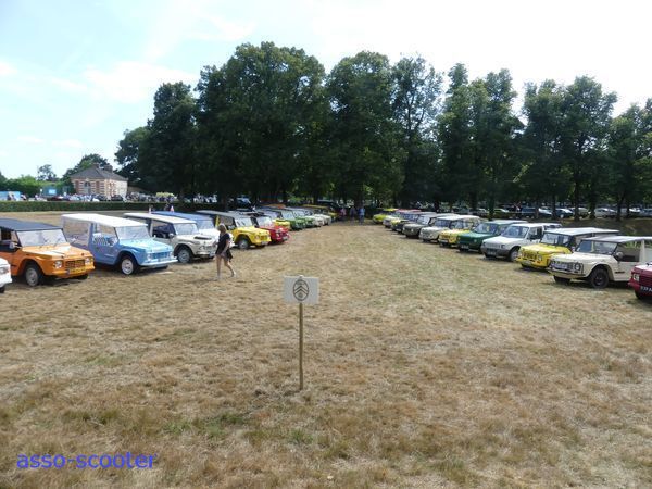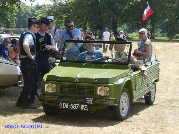 Nous rejoignons les deux bassins éloignés du château et tombons sur une pincée de Méhari, 1968-1987, de toutes les couleurs, présentées pour la plupart par le Méhari Cassis Club. Pour infirmation, la Méhari est interdite de circulation en Allemagne car non homologué en raison de sa carrosserie plastique inflammable.