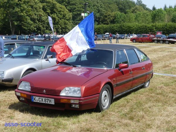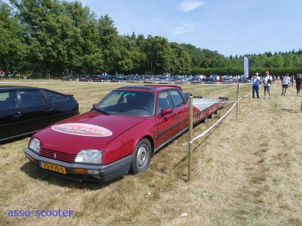 La visite continue à gauche du château et nous retrouvons l’exposition des limousines. L’héritière de la DS, la CX, la prestigieuse SM et son moteur V6 Maserati. La XM élue voiture de l’année en 1990. La C5 fabriquée à Rennes et la dernière limousine haut de gamme de la marque, la C6. Il y a quelques spécimens assez étonnants comme une CX transformée en pick-up, équipée d’un plateau pour recevoir une voiture pour les tournages de films. Nous revenons sur nos pas pour passer de l’autre côté du château quand nous nous arrêtons devant une animation « chez André ». Un food truck type H et une rencontre étonnante avec André et Georgina Citroën pour célébrer la naissance de la 1ere Voiture que vous pourrez voir dans notre vidéo.