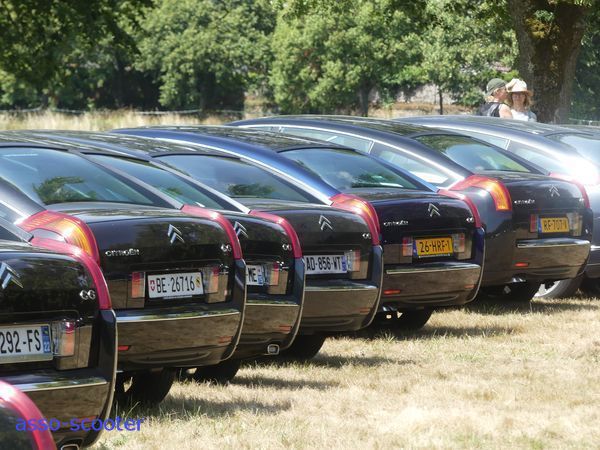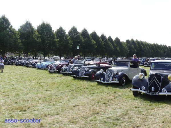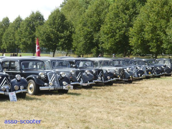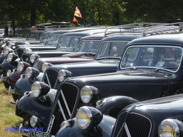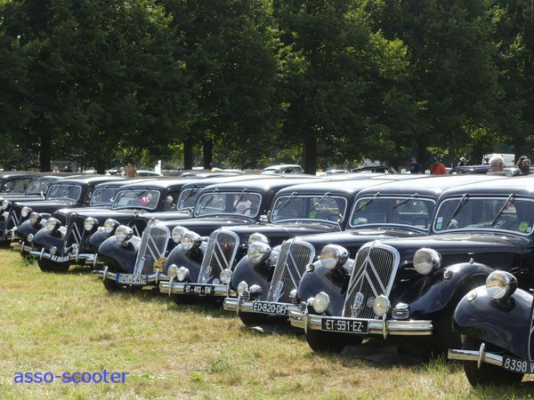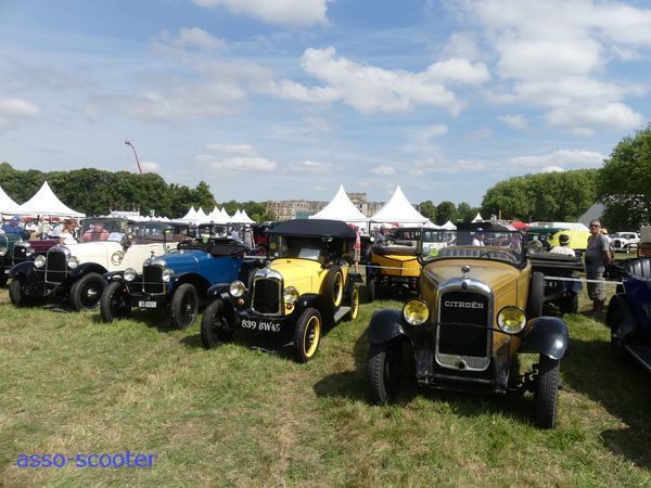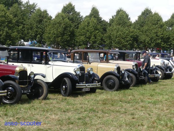 Nous traversons l’Espace Concert ainsi que les divers restaurants et bars et enfin, nous arrivons dans le parc du château et là, nos yeux s’écarquillent et on se retrouve devant une rangée impressionnante de Citroën d’avant-guerre, de la Rosalie, 1933-1938, à la Trèfle, 1922-1926, en passant par la C4, 1928-1932 et la C6, 1929-1932, et enfin quelques utilitaires et une autochenille.