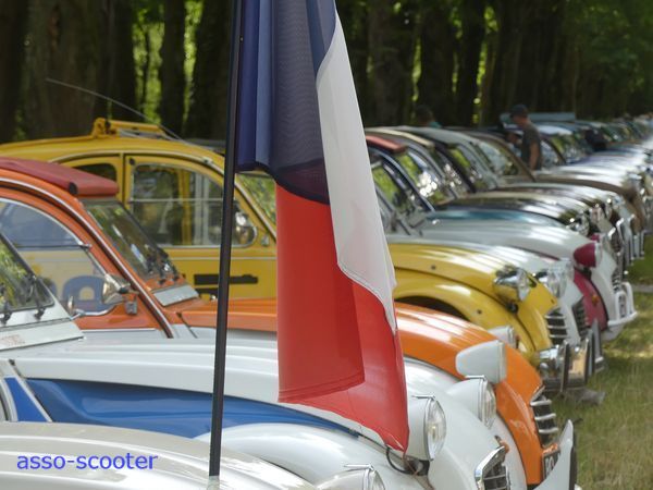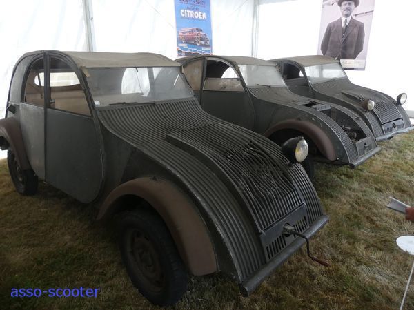 Et enfin la voilà, notre symbole national, la Citroën la plus populaire, la fameuse 2CV, 1948-1990, notre Deudeuche nationale et à perte de vue. Alignées sur 2 rangées sur presque 200m les 2CV présentées sont toute d’un ton gris et plutôt monotone.