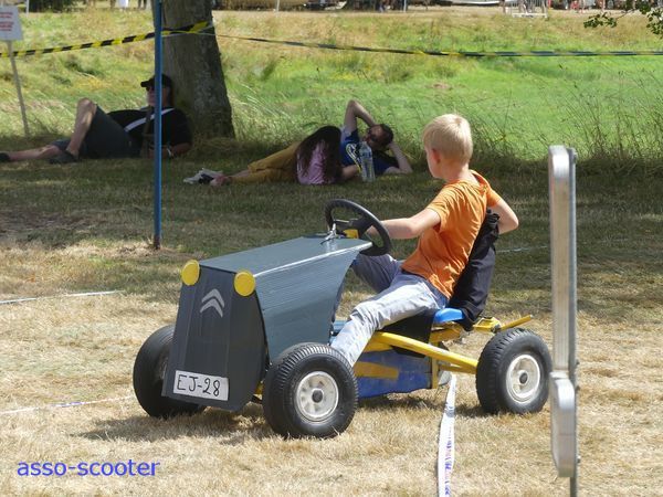 Nous continuons notre visite en traversant l’espace enfant, un château gonflable et une piste de karting à pédales et un marchand de glace, pour les enfants sages ou les gourmands. Nous arrivons au Village Partenaires où est installé le plateau de la radio qui émet pour l’occasion avec des anecdotes historiques de la marque, animée par l’équipe de France Bleu et de François Allain entre autres. Des partenaires et un musée éphémère proposent de très beaux véhicules de l’association l’aventure de Peugeot-Citroën, notamment les trois premiers prototypes de la 2CV qui ont été retrouvé ici même, en 1994, sur le site PSA de la Ferté-Vidame dans une grange abandonnée.