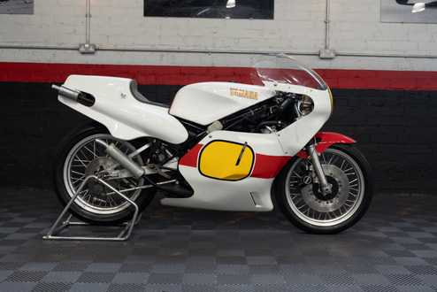 Cette Yamaha TZ500 offre aux acheteurs la chance très rare d’acheter un exemplaire inutilisé de la moto de course emblématique des années 1980. En tant que TZ500J de 1982, cette moto puise ses racines dans l’emblématique YZR500 menée à la victoire par Kenny Roberts, et constitue une superbe pièce à toute collection de véhicules de couses classiques, bien qu’elle puisse facilement être exposée à n’importe quels événements ou rallyes historiques sur piste après un inspection générale et entretien.