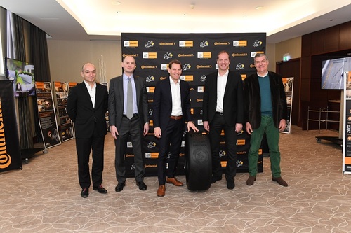 Légende photo : Serge Bonnel, Directeur Général de Continental France, Jean-Etienne Amaury, Président d’A.S.O., Nikolai Setzer, Membre du Comité Exécutif Continental AG Division Pneumatiques monde, Chrisitan Prudhomme, Directeur du Tour de France et Laurent Lachaux, Directeur Commercial et des Partenariats A.S.O.