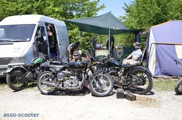 Mais les Coupes Moto Légende ne sont pas réservés qu’aux plus grands. Beaucoup sont là pour le plaisir de courir et montrer leurs machines, venues d’un autre temps mais toujours vaillantes. C’est toujours un plaisir de les voir tourner, vrombir ou rugir, pétarader. Et notre admiration se porte tout aussi bien aux machines qu’aux propriétaires. Il faut déambuler dans les allées pour voir comment ils les bichonnent. Entre deux tours de pistes, et parfois, même juste avant, ce sont les derniers réglages, dernières mises au point.