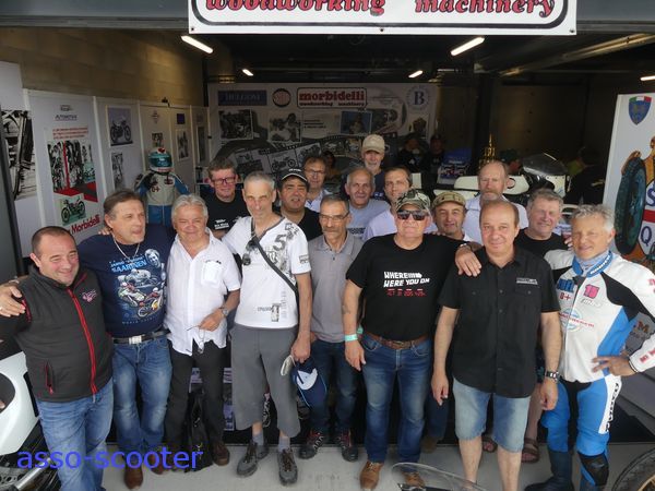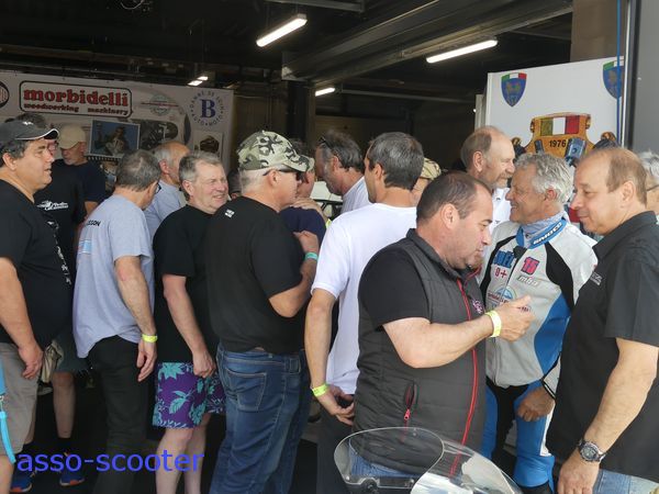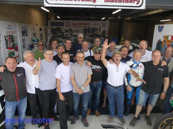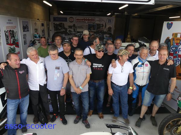Sur les quelques mètres carrés des box, tout ce qui fit la gloire de la marque italienne était réuni. Les machines, bien sûr et surtout les hommes, les Moribelli men. Nous ne vous dirons pas qui des hommes et des machines sont les plus bruyants mais quand les Morbidelli men se retrouvent, ils parlent forcément de Morbidelli ! Parmi ces hommes, il y a entre autre Jean-Claude Selini, Alain Rofidal, Denis Longueville, Christian Lebadezet….