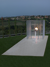 Arcangelo Sassolino : « ... j’ai immédiatement pensé au feu, matière primaire, plein de mystère et inexplicable. Vivant, réel. Météorique, furtif, fugitif, enchanteur, dangereux, comme la vie de Marco. Pas la facilité d’un monument s’élançant vers le ciel, mais quelque chose en ligne avec l’horizon... »