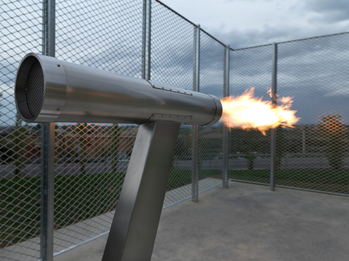 Silvia Dainese : « La dalle de ciment est un socle idéal qui apporte du dynamisme à la Cage ; Cage dont les reflets invitent les gens à se rassembler autour d’elle, et qui les protège de la flamme tout en protégeant la flamme elle-même ».