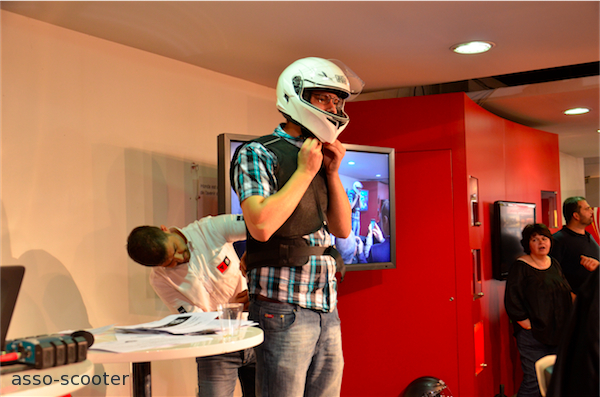 C’est Stefano Grasselli de Dainese Italie qui est venu présenter l’airbag qui a maintenant deux ans d’existence. Cela se passait dans les locaux de Japauto à Paris dont Christian Vilaseca est le représentant.