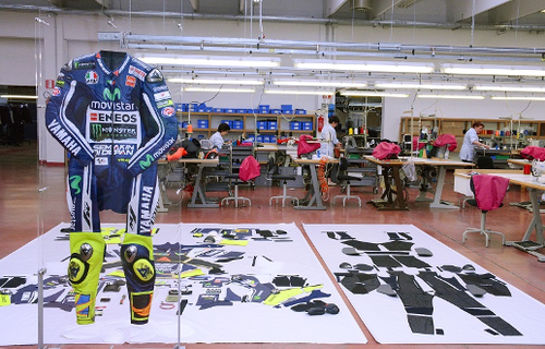 La combinaison n’est pas un un simple assemblage de cuirs, cousus ensemble, pour s’ajuster au plus près du corps du pilote. C’est devenu, avec Dainese, un produit hautement technologique et dans le cas de la combi de Valentino Rossi, l’électronique est là.