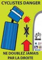 A Lille, 2500 autocollants vont ainsi être apposés sur les camions et les autocars pour rappeler aux cyclistes que malgré la vigilance des conducteurs, malgré les rétroviseurs et les radars, ceux-ci sont impuissants quand le cycliste est dans leur angle mort ou quand ils se glissent entre le véhicule et le bas-côté.