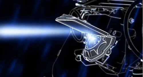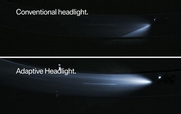 L’ampoule est montée sur un miroir orientable qui est va bouger en fonction des informations transmises par des capteurs. Le mouvement de ce bloc constitué du miroir et de l’ampoule va donc compenser l’allègement ou la charge de la fourche en basculant d’avant en arrière. Lors des prises d’angle, le bloc va tourner sur lui-même de droite et de gauche pour éclairer la zone sur laquelle se dirige la moto.