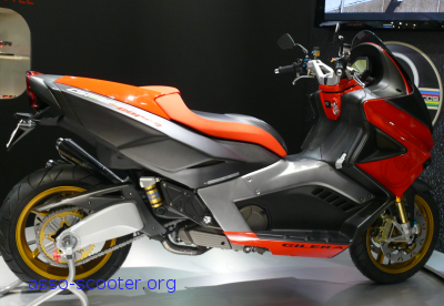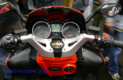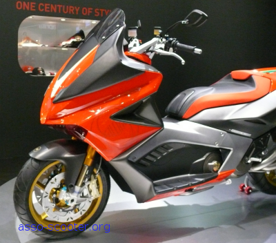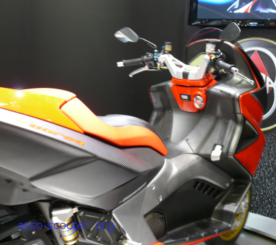 Matériaux façon carbone à profusion, pare-brise raccourci, tableau de bord digital et gros bouton de démarrage, l’aspect sportif du Gilera Gp 850 Corsa a été travaillé pour apparaître au premier coup d’ ?il.