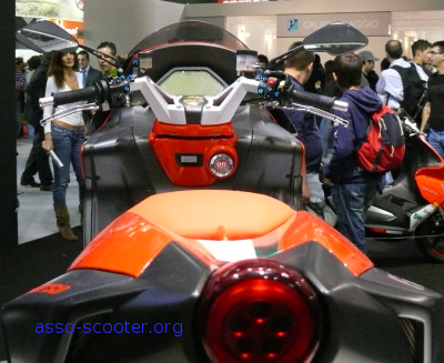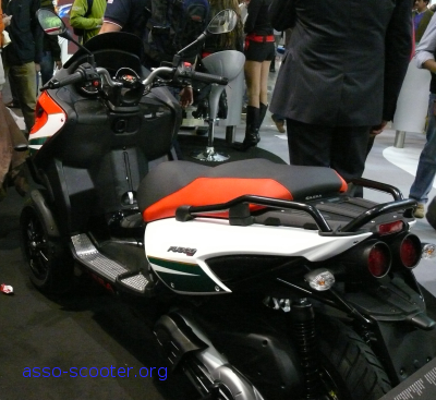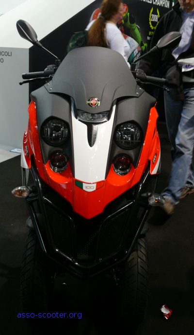 Décorations aux couleurs du drapeau italien, écusson frappé du nombre « 100 », les Gilera Gp 800, Fuoco et Nexus attiraient les regards et le monde. Car sur le stand, il fallait prendre son tour pour enfourcher les scooters.