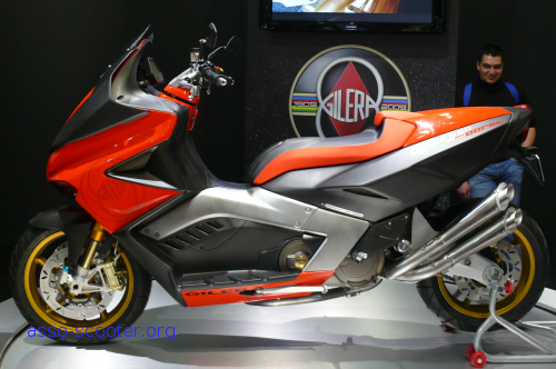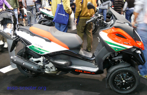 Gilera fête l’année prochaine son centenaire et pour marquer l’événement, la marque présentait des scooters en habits de fête au salon de Milan.