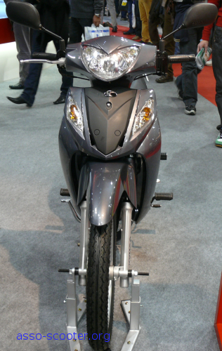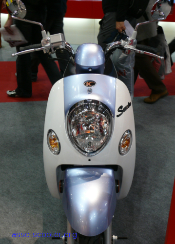 Kymco présentait aussi un scooter inspiré du Mio de Sym., le Sento. Un scooter tout en rondeurs sui semble nous tendre les bras.