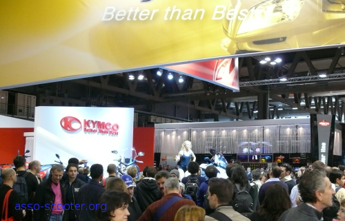 Beaucoup de monde chez Kymco à l’Eicma 2008, surtout au moment où les Kymco girls faisaient leur show. Il faut dire que sur le stand, il y avait beaucoup à voir. Des modèles originaux ou