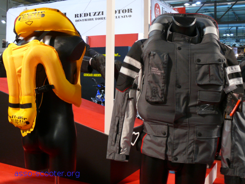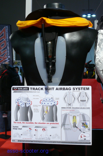 Nous avons noté aussi l’émergence d’équipement de sécurité, notamment des air bags. Ceux-ci prennent la forme de gilet ou plus rare encore de casque airbag. Chez Apc, par exemple, l’airbag vient enserrer le cou et la nuque. Il faut accepter cependant d’avoir cette excroissance sur l’arrière du casque.