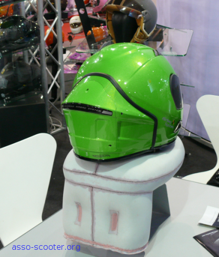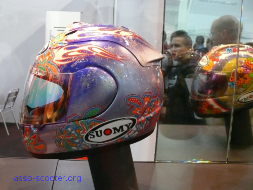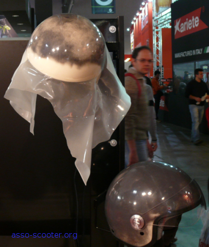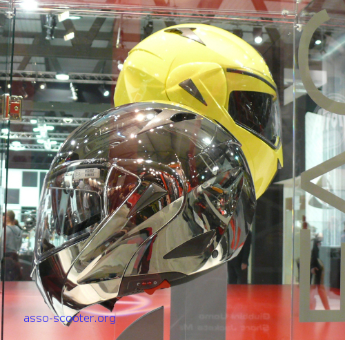 Une tendance noté sur l’Eicma 2008 est que les casques ne sont plus brillants et froids. Les constructeurs les recouvrent d’un matériau souple qui forme comme une peau. D’après les fabricants, ce matériau a les mêmes propriétés que le vernis brillant et protège tout autant le casque.