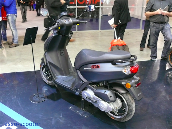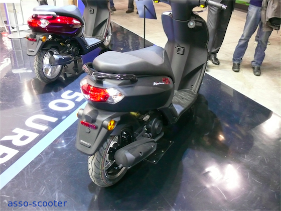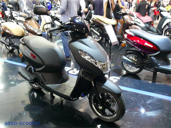 Peugeot présente également son Kisbee Rs. En 50cc, il a une ligne générale qui fait plutôt penser à un 125cc. Monocylindre 4 temps, le bloc moteur du Kisbee Rs développe 3.4Cv.