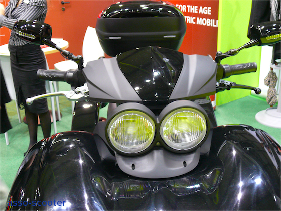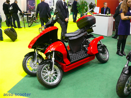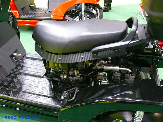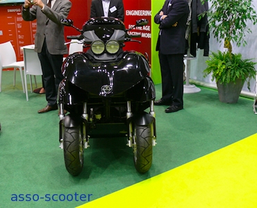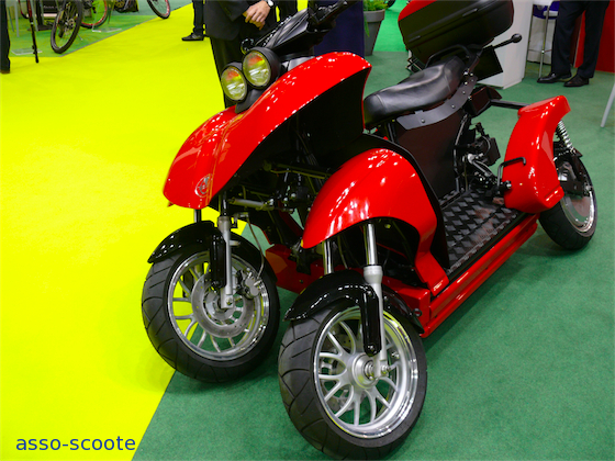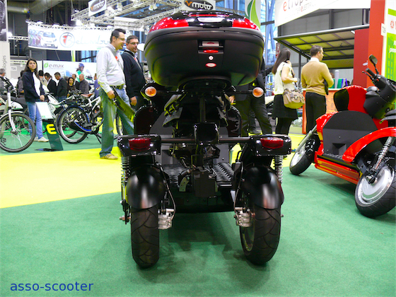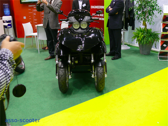 L’autre particularité du EVR-1 est que, si le scooter penche comme une moto, le bas du scooter reste parallèle à la route. D’où l’impression que la fourche va dans un sens et que le reste du scooter dans un autre. Il faudra voir ce que cela donne à la conduite.