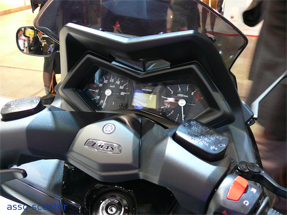 Pour l’heure, le T-Max a été revu de fond en comble. Au niveau de l’instrumentation, c’est le retour à du traditionnel pour le tachymètre qui gagne ainsi en lisibilité. La précédente version était pratiquement illisible, voir notre article Essai Yamaha T Max 2008 : un max de sensations. A droite, le compte-tours trouve sa place et entre les deux, une fenêtre digitale.