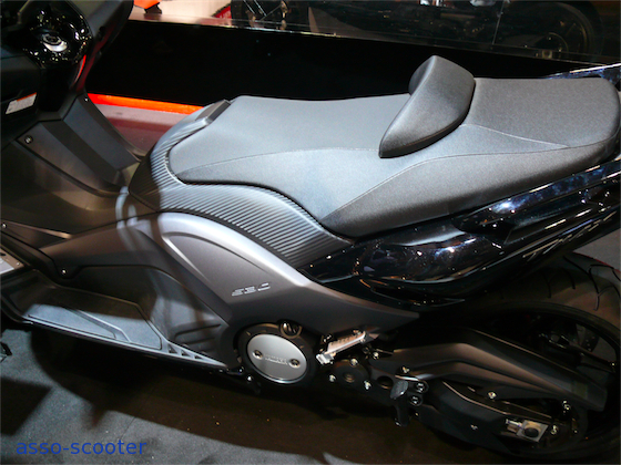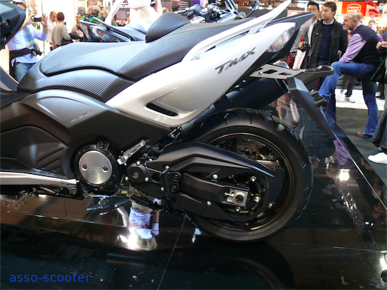 Par rapport à l’ancien T-Max, le moteur gagne quelques centimètre cubes et passe à 530cc. Il gagne également en puissance, 46.5 Cv contre 43.5Cv pour l’ancienne version. Le moteur tourne également un peu moins vite, la puissance maxi est obtenue à 6.750tr/mn contre 7.500 pour l’ancienne génération. A voir ce que donne ce surcroit de puissance. Le couple supplémentaire permettra des reprises plus vigoureuses et une conduite plus souple. Mais est-ce vraiment ce qu’on demande au T-Max ?