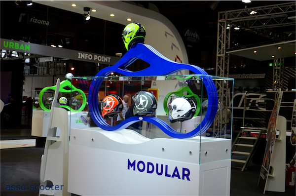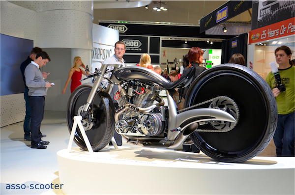 Au salon de Milan, nous avons également noté des stands hors norme et une machine Akrapovic, prototype pour montrer le savoir-faire de la marque.