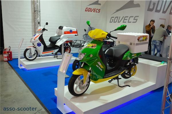 Govecs expose ses scooters destinés aux professionnels. Un Govecs Subway et ambulance nous rappelle que l’écologie est aussi affaire de sociétés.