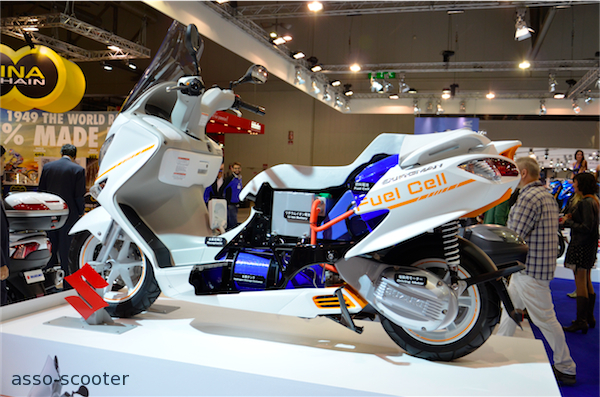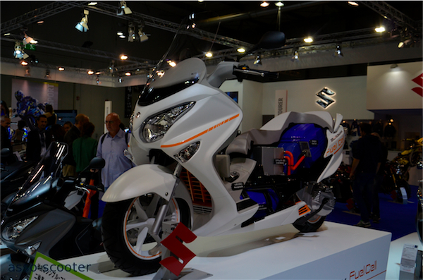 Le Fuel Cell figure en bonne place au salon Eicma 2014. La technologie de la pile à combustible en alternative à l’essence met encore plus de temps à se déployer que l’électrique, mais Suzuki continue sur cette voie.