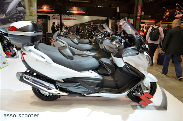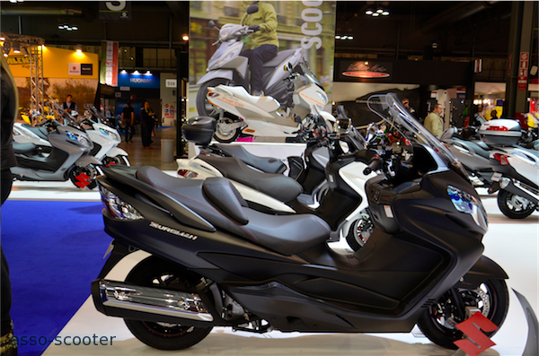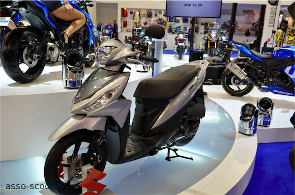 Suzuki présente un nouveau modèle, Address, un nouveau 125cc. Les Burgman font toujours partie de la fête.